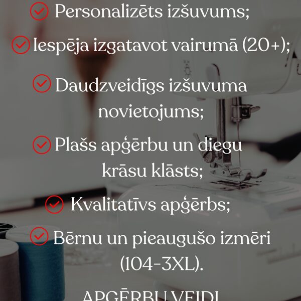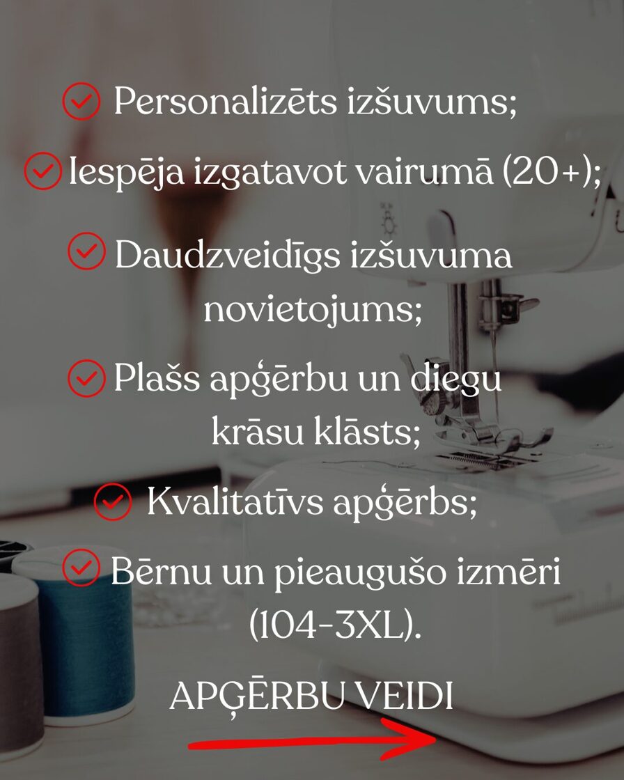Labākais veids kā reprezentēt sevi ir kopīgs apģērbs. Pie mums ir iepēja pasūtīt vienojošu apģērbu dažādās variācijās. Cena atkarīga no izsuvumu daudzuma un sarežģītības. Pērkot vairākus vienāda izšuvuma apģērbus- atlaide. Lai uzzinātu vairāk raksti e-pastu ([email protected]) vai aizpildi kontaktu formu.
